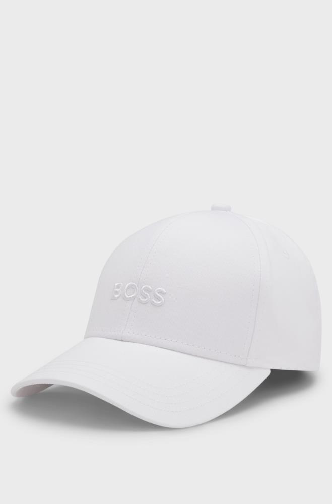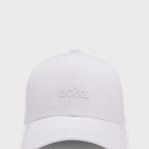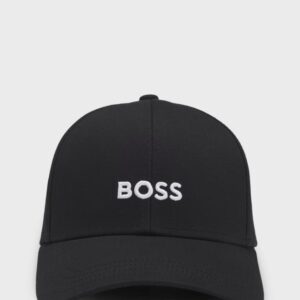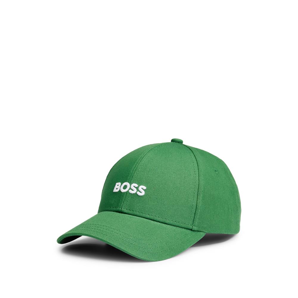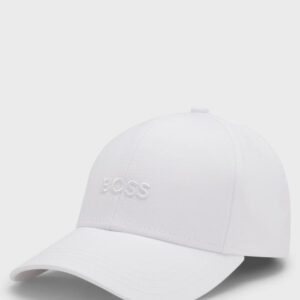 Um boné distintivo com um logótipo bordado BOSS. Este acessório é confecionado em sarja de algodão com uma tira ajustável com fivela.