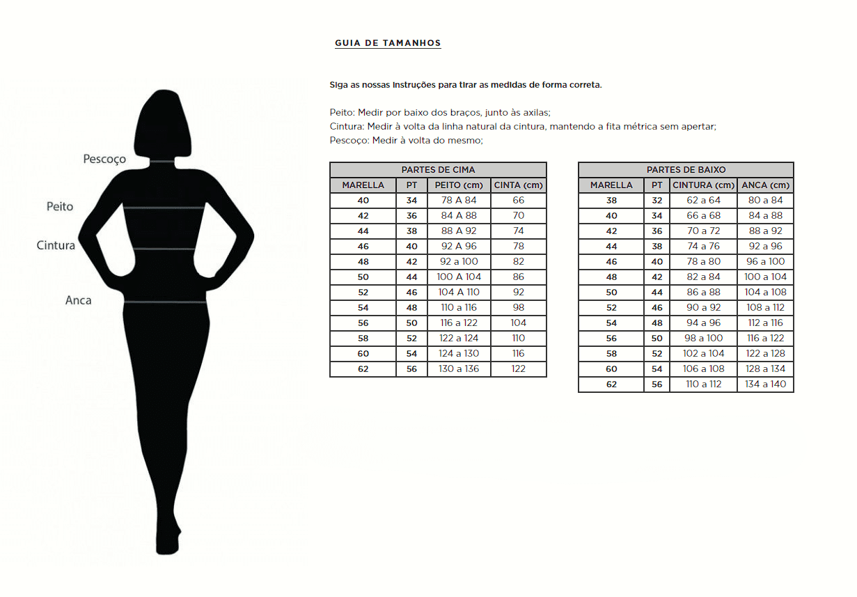 TamanhoTamanho numéricoBustoCinturaQuadril
