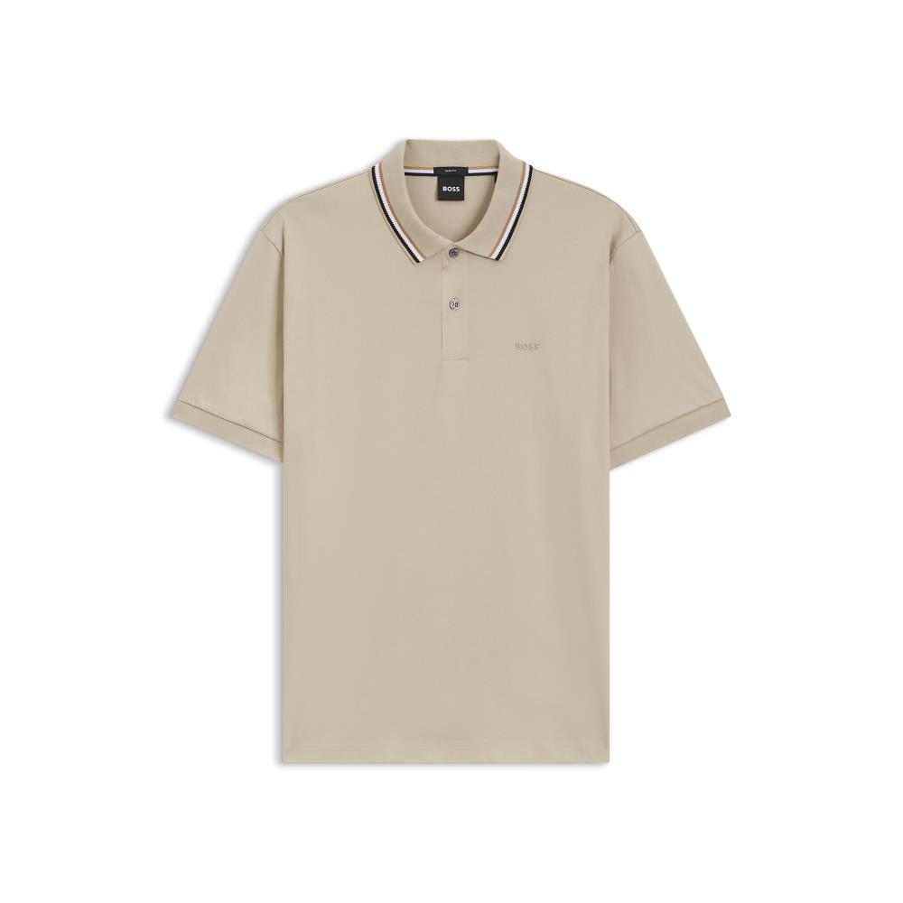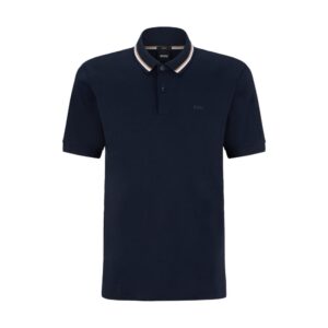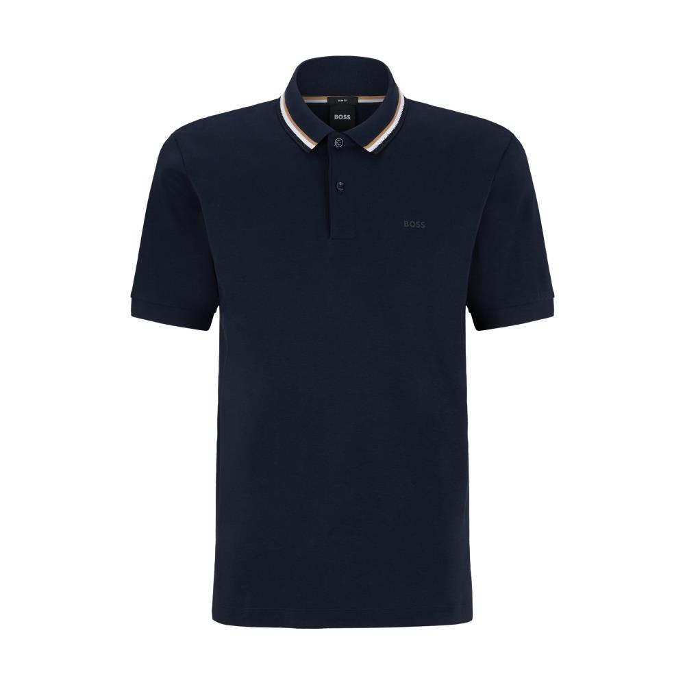 POLO BOSS DE AJUSTE SLIM EM ALGODÃO COM RISCAS NO COLARINHO