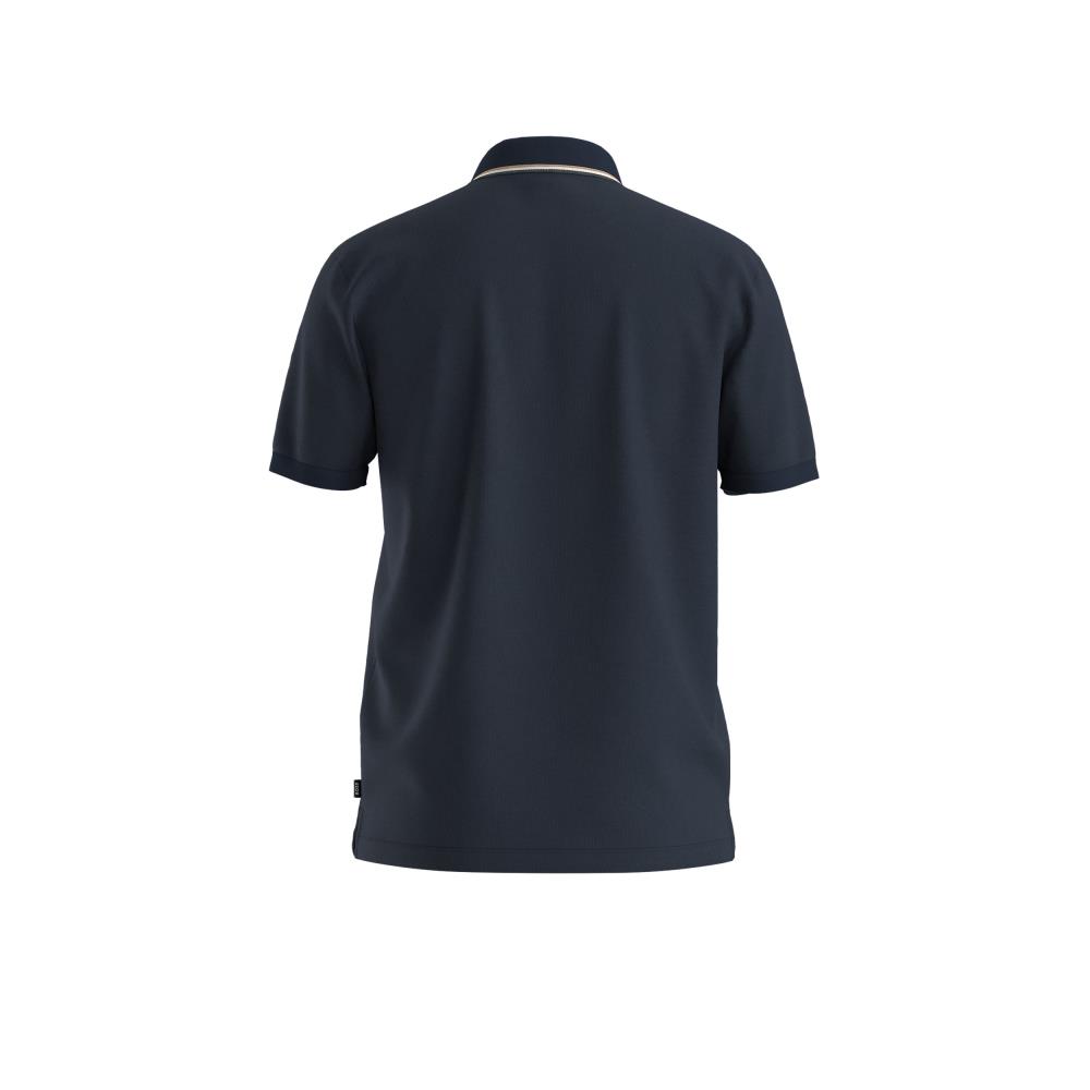 Um polo luxuoso de ajuste definido BOSS Menswear. Com riscas de assinatura no colarinho, este polo de manga curta foi trabalhado em algodão mercerizado, para uma sensação super suave e apresenta um padrão de logótipo BOSS no mesmo tom no lado esquerdo do peito. A costura esquerda apresenta uma bandeira da marca para um acabamento distintivo.